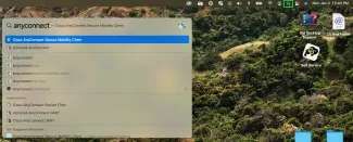- برای جستجوی Cisco AnyConnect Security Mobility Client از جستجوی نورافکن در نوار ابزار بالای مک خود استفاده کنید، یا پوشه برنامههای خود را پیدا کنید.