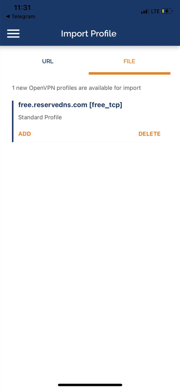 2. برنامه App را باز کنید. در OpenVPN Connect، به تب Upload File بروید، فایل .ovpn که از طریق ایمیل دریافت کرده‌اید را پیدا کرده و دکمه وارد کردن را فشار دهید.